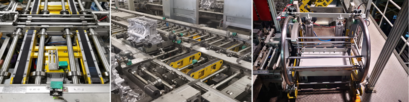 項(xiàng)目包含雙層立體空間的生產(chǎn)線規(guī)劃,整體設(shè)備3D產(chǎn)品設(shè)計(jì),功能性分析,設(shè)備制造,現(xiàn)場(chǎng)安裝調(diào)試,自動(dòng)化運(yùn)行交付。設(shè)備應(yīng)用了自主知識(shí)產(chǎn)權(quán)的磁性聯(lián)軸器,自動(dòng)輥床,轉(zhuǎn)臺(tái),頂升移栽機(jī),升降機(jī),檢測(cè)設(shè)備,精定位托盤,翻砂機(jī),擋停總成機(jī)構(gòu),檢具。